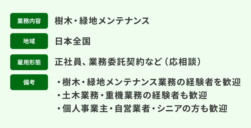 樹木・緑地メンテナンス業務を担うメンバー、パートナーを募集